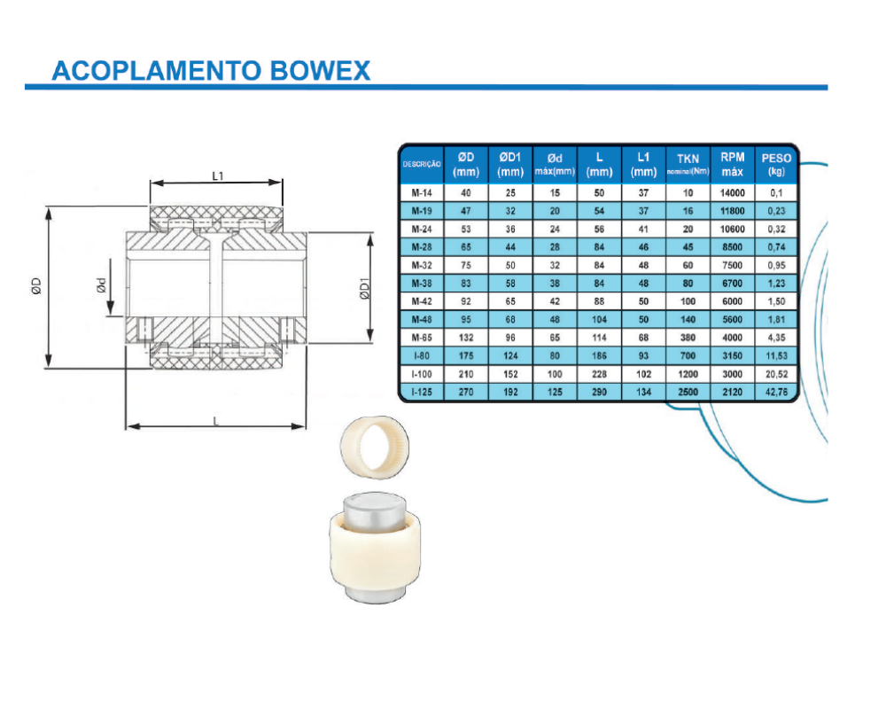 Temos diversos modelos e tamanhos de acoplamentos, elásticos,